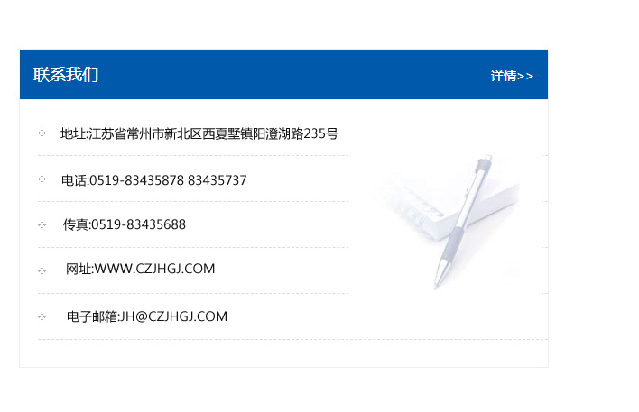 地址:常州市新北區友邦商務大廈1幢16、17層  電話:0519-85101652  傳真:0519-85112595  郵編:213022  網址:www.cz-jiayue_cn.dqyjmy.com  郵箱:xiajifengaa@163.com
